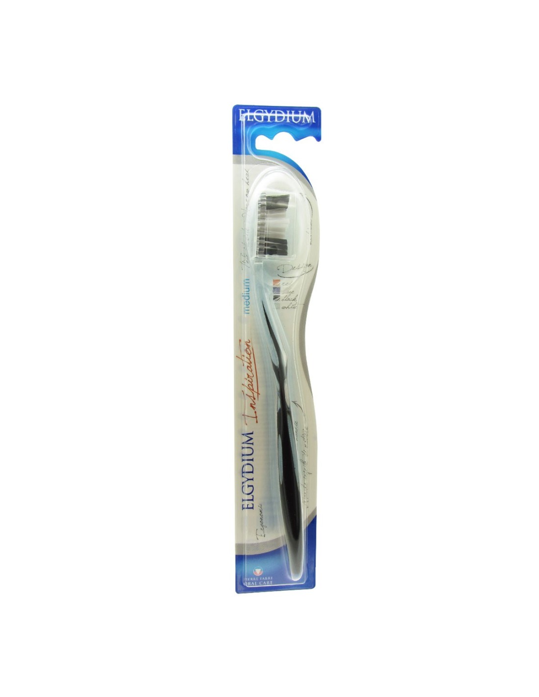 Elgydium inspirition Medium is a toothbrush with a stylish look. The narrow head with silks in Tynex of different heights and an ergonomic handle with a colored line.