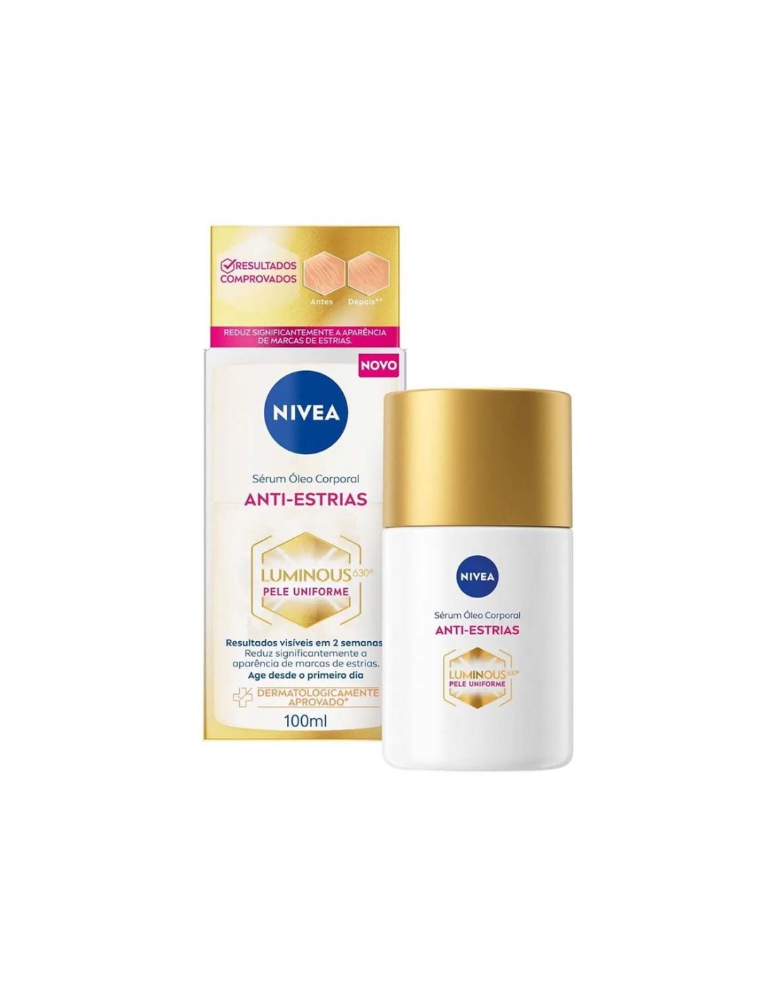 Nivea Luminous 630 Serum Anti-Stretch Mark Body Oil has a formula enriched with Luminous630, a patented ingredient that balances the skin's natural melanin synthesis, helping to even out skin tone and, consequently, minimise stretch marks and dark marks.