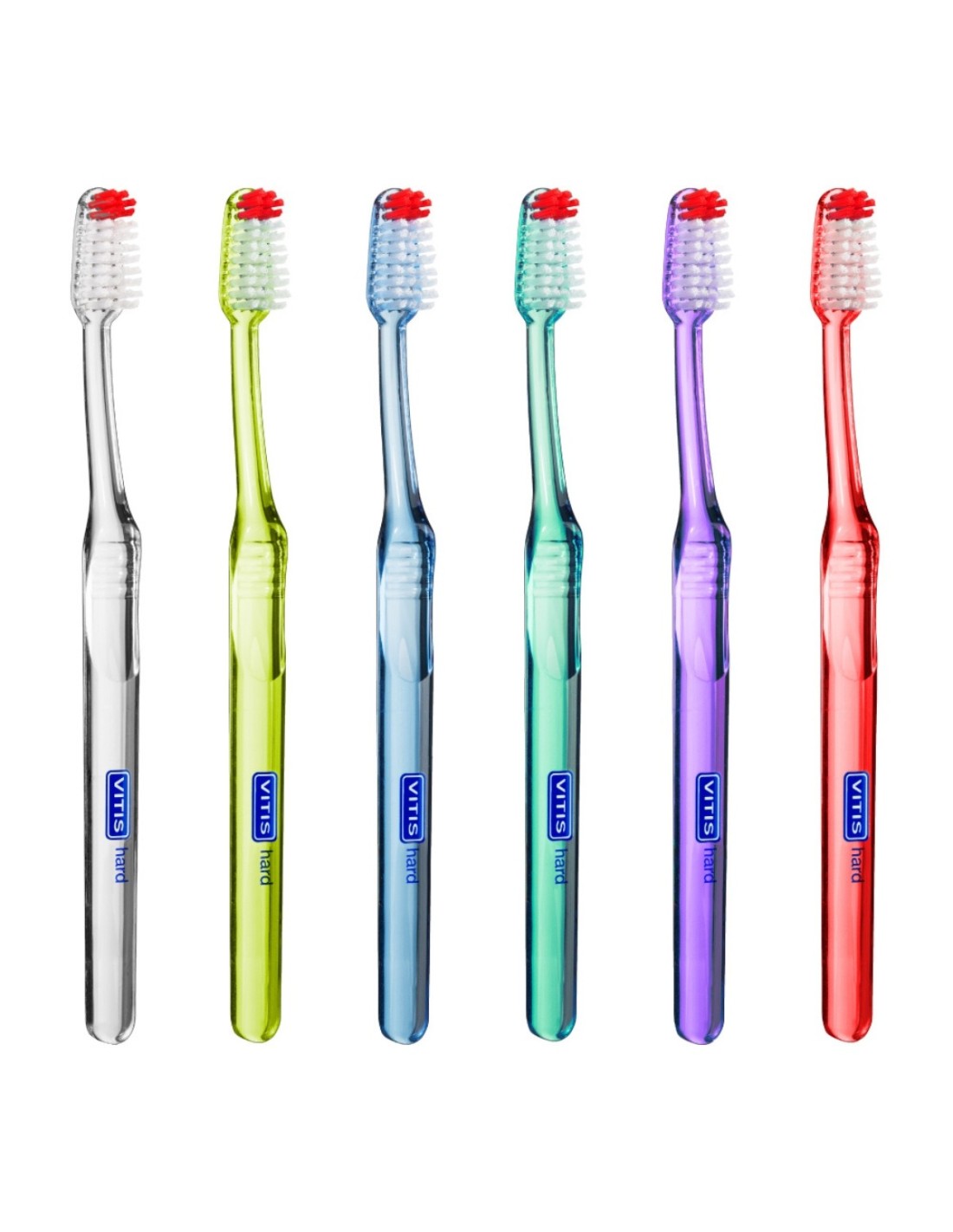 Vitis Toothbrush with hard filaments that is designed for efficiently removing oral biofilm (bacterial plaque).